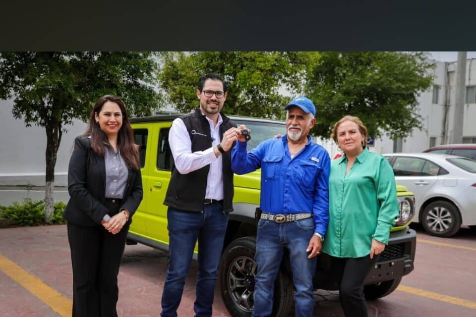 CONEXIÓNNL/SANTIAGO.- El Presidente Municipal de Santiago, David de la Peña Marroquín, entregó al ciudadano Ubaldo Valdez Valdez, el vehículo todo terreno Susuki Jimmy modelo 2026, premio del sorteo “Con tu predial ganamos todos”.